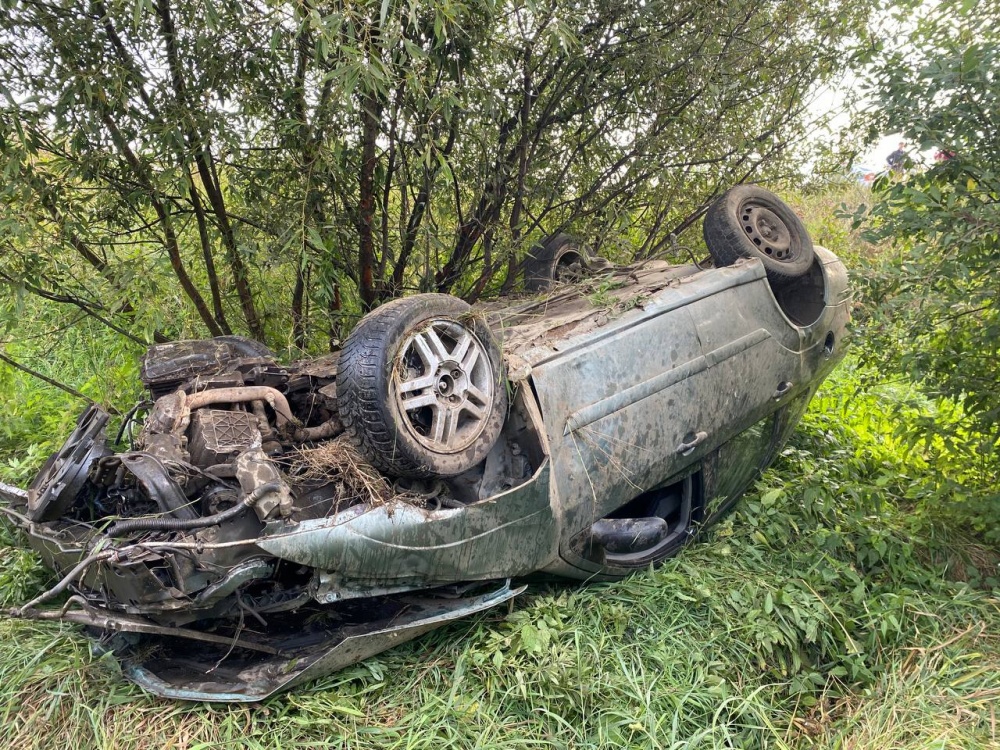 автомобиль съехал с проезжей части и опрокинулся. Водитель не был пристегнут