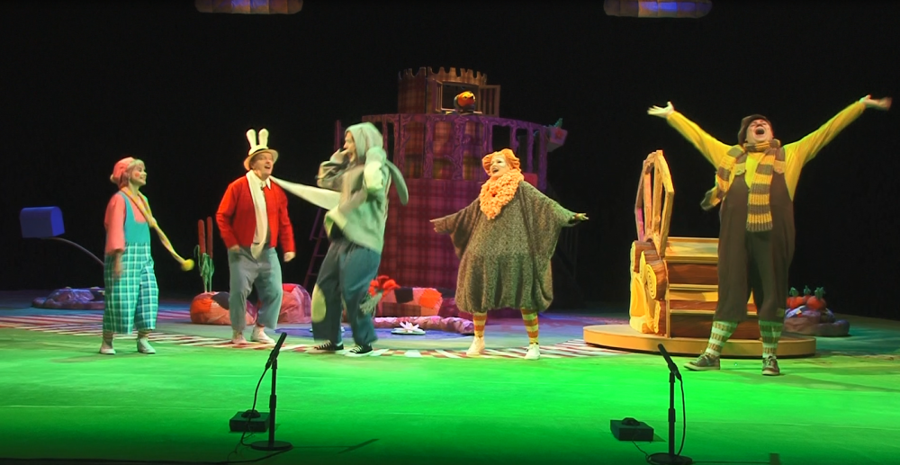 Домики персонажей, клумбы, грядки и даже облака созданы из множества лоскутков ткани, а костюмы кажутся такими мягкими и пушистыми, что и взрослым, и детям непременно захочется героев спектакля обнять. Такой мягкий игрушечный мир придумала художник-постановщик и художник по костюмам Юлия Зятькова.