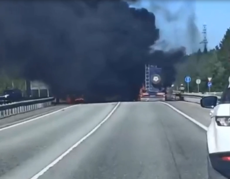 На развязке, неподалеку от Горбунова, на дороге горел автомобиль. Издалека казалось - бензовоз. Но по факту, как потом выяснилось, воспламенился цементовоз. У него на ходу взорвалось колесо. Начался пожар. Огонь быстро охватил машину. Как рассказали в МЧС, на тушение выезжали два пожарных расчёта. С огнем они смогли справиться за 12 минут. Водитель не пострадал, эвакуировался самостоятельно, а цементовоз сгорел полностью. Предварительно, причиной пожара называют неисправность узлов агрегата транспорта.