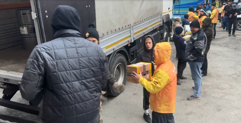 Сперва в большегрузах разместили крупную технику, и уже сверху укладывают коробки с другим гуманитарным грузом. Уже скоро эти длинномеры уедут в зону СВО и в госпитали Донецка и Луганска. Здесь 11 мотоциклов, три УАЗа, автомобильные запчасти. А одна из этих буханок, например, будет служить медикам, в отделении сбора и эвакуации раненых.