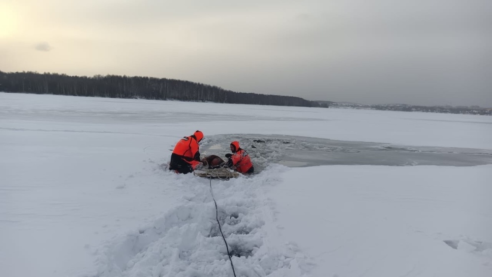 На место выдвинулась бригада спасателей и скорая помощь. Водолазы проползли 150 метров, чтобы добраться до полыньи, в которую провалился рыбак. К тому моменту он находился в ледяной воде около получаса. Мужчину достали, на носилках вытянули на берег и передали медикам.
