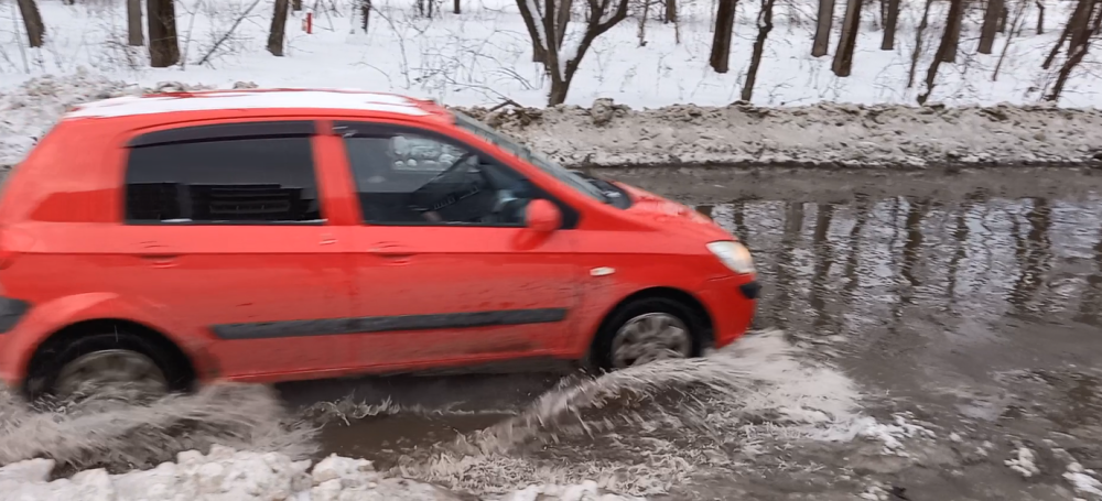 Потоки воды на Гальянке. Холодной водой залило дублер Черноисточинского шоссе между остановками «Карьер» и «Универсам». Авария случилась в пятницу утром на сетях «Водоканала-НТ».