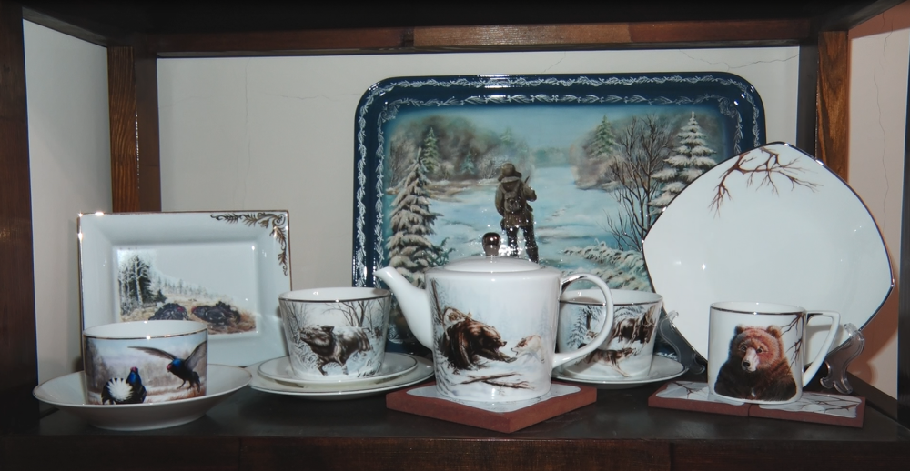 «Связь времен» - так называется проект тагильских художников, представленный на Всероссийской выставке - «Московский сокольничий 2023» - заснеженная тайга и осенний бор с токующей птицей. Разгневанный секач и поднятый собаками медведь - охотничьи мотивы объединяют эти предметы в единую коллекцию.