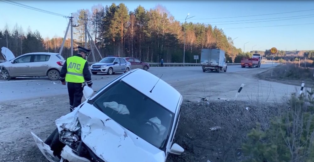 Двухлетний ребенок пострадал в ДТП. На трассе под Тагилом столкнулись две легковушки.