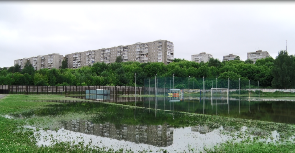 Затопило футбольное поле, парковку и площадку для пляжного волейбола, которую открыли три года назад. Виной всему - дождевые потоки, которые бегут с Красноармейской и Космонавтов на стадион, потому что он в низине, говорит директор спортшколы «Высокогорец» Герман Конев.