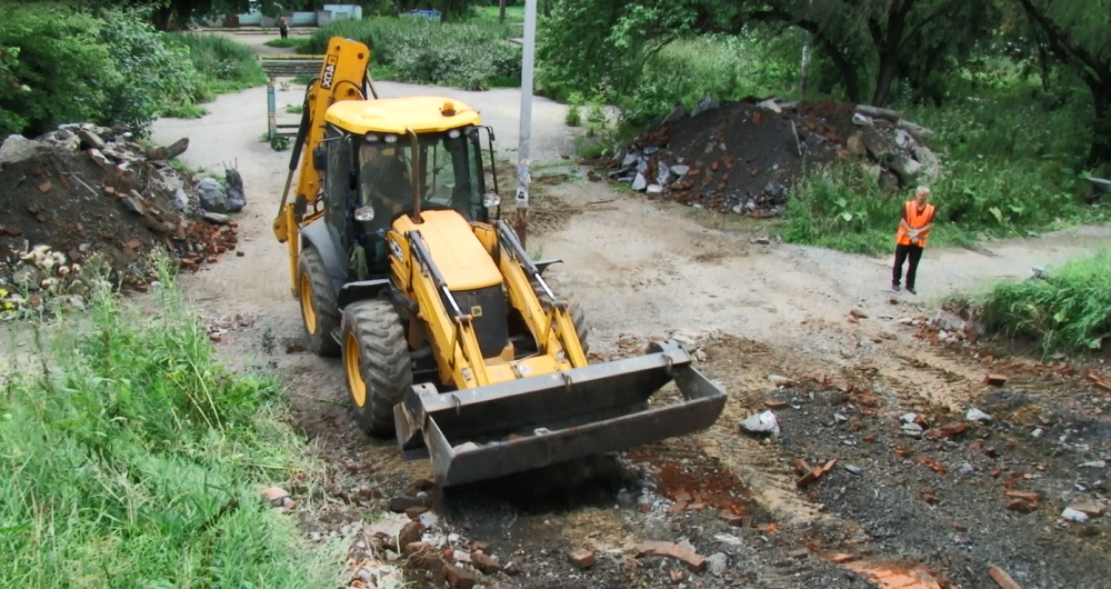 Началось благоустройство новой территории для отдыха по нечетной стороне домов на проспекте Строителей, там, где когда-то летнее кафе работало и был широкий лестничный спуск к домам на Горошникова.