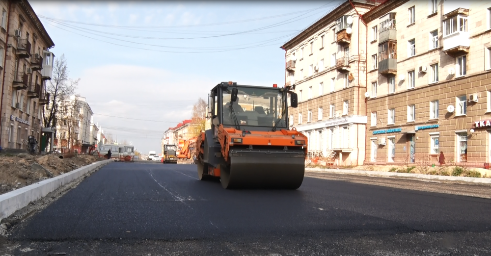 Пока осенняя погода позволяла, «Тагилдорстрой» приступил к асфальтированию участка Октябрьской революции от проспекта Ленина до проспекта Строителей.