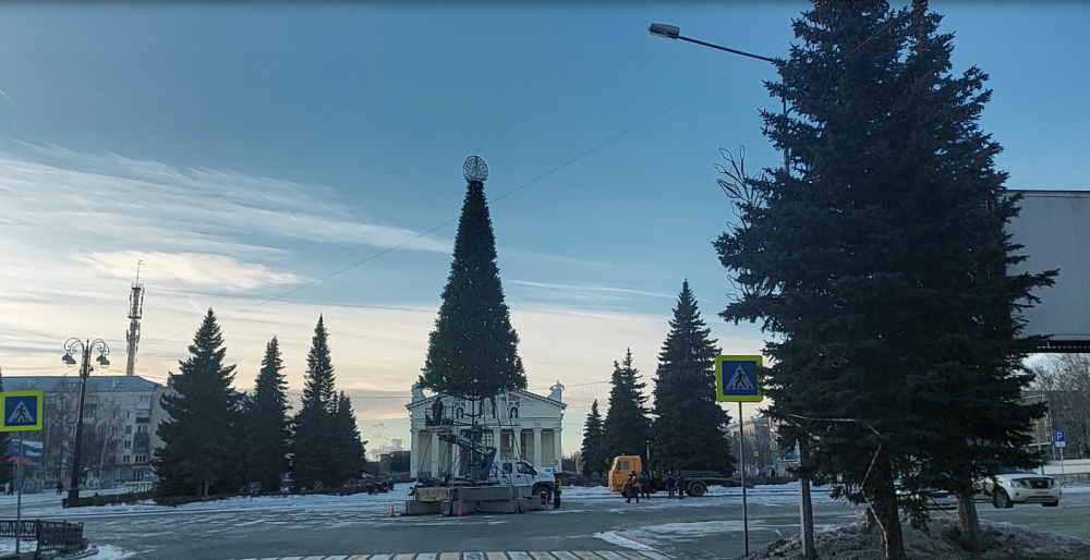 Новогодняя сказка потихоньку приходит в Нижний Тагил. Снега в городе по-прежнему почти нет, зато новая елка уже практически собрана на Театральной площади.