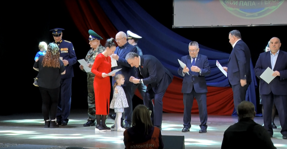 «Сегодня отдельное внимание мы уделяем семьям погибших, кто сегодня, к сожалению, не вернулся из зоны проведения специальной военной операции и конечно тех, кто сегодня служит там, рискуя каждый день жизнью. И наша основная задача, об этом очень часто говорит президент РФ Владимир Владимирович Путин, сделать все возможное здесь, в мирной жизни, чтобы все-таки всем жилось хорошо и комфортно».