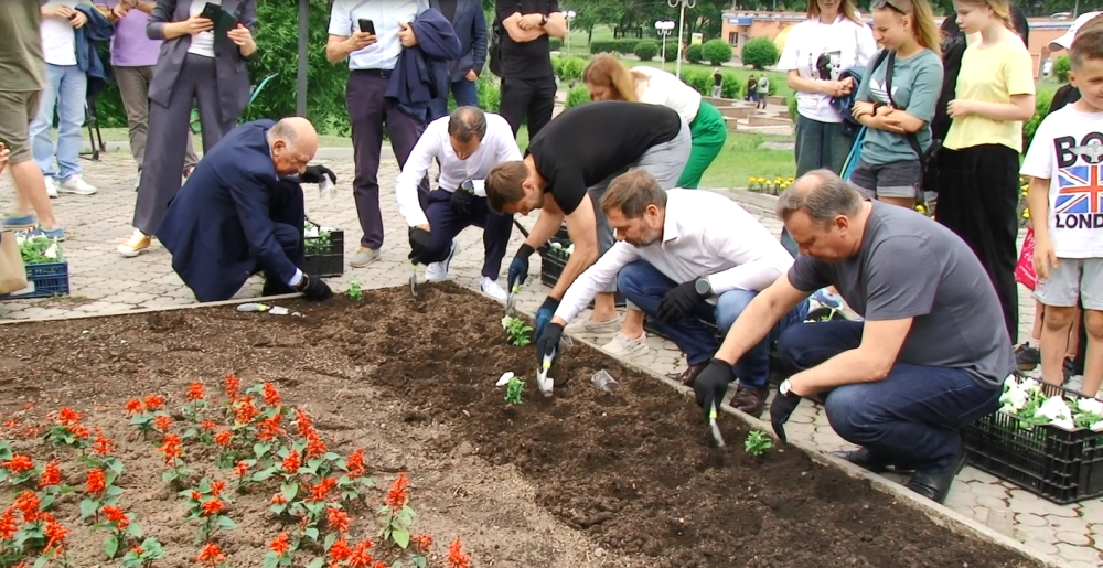«В позапрошлом году мы высаживали специальные растения в нашем прудке - осветлителе, а в этом году вот такие замечательные цветы. Поэтому я очень рад, что мы все вместе делаем очень хорошее дело. Не просто в футбол играем, а еще и прикладываем руку, чтобы делать наш город красивее и красивее».