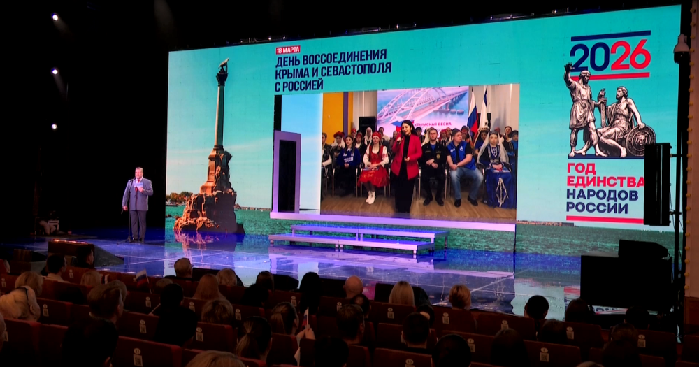 Присоединиться к свердловчанам смогли и крымчане, подключившиеся по видеосвязи из Симферополя из студии молодежного центра «Чехов». Сегодня Крым и Свердловская область, по словам губернатора, сотрудничают по многим направлениям - это совместные культурные, образовательные, туристические проекты. Есть и города-побратимы. Например, у Нижнего Тагила это Евпатория. На сцене Уральского театра эстрады выступили творческие коллективы Свердловского колледжа культуры и искусства и областного педколледжа. Приветствия прозвучали от представителей национальных объединений, от общественных организаций, в том числе от финалиста региональной кадровой программы «Управленческие кадры Урала» ветерана СВО тагильчанина Андрея Малинина.