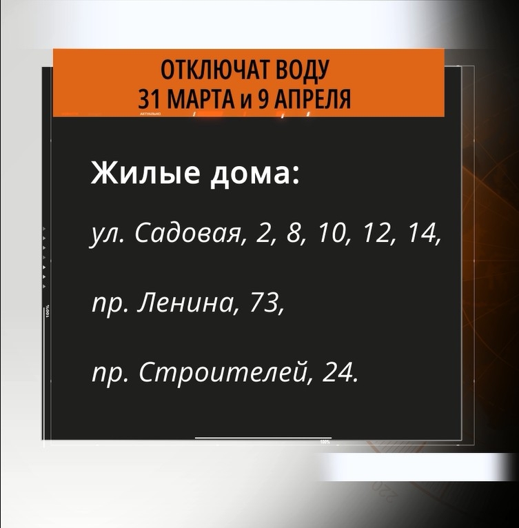 Центр города останется без холодой воды на два дня. Отключения запланированы на 31 марта и 9 апреля. Под них попадают 17 административных зданий и 7 жилых домов. Большинство расположены на улице Садовой, некоторые — на проспектах Ленина и Строителей.