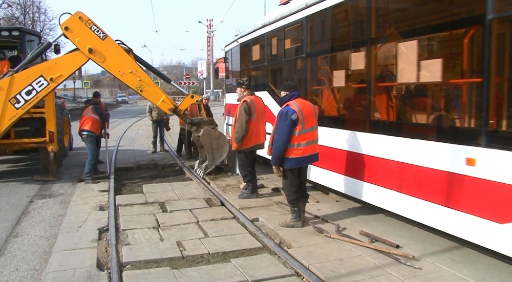 Сейчас на этом участке на улице Ленина ставят стяжки на рельсах, а вообще, запланированный ремонт здесь идёт уже второй месяц. В ближайших планах - замена кривой трамвайного полотна на повороте у Краеведческого музея со стороны плотины. Ещё одна ремонтная бригада муниципального предприятия работает на Восточном шоссе. А вот по ночам специалисты меняют контактную сеть на перекрёстке Циолковского-Мира.