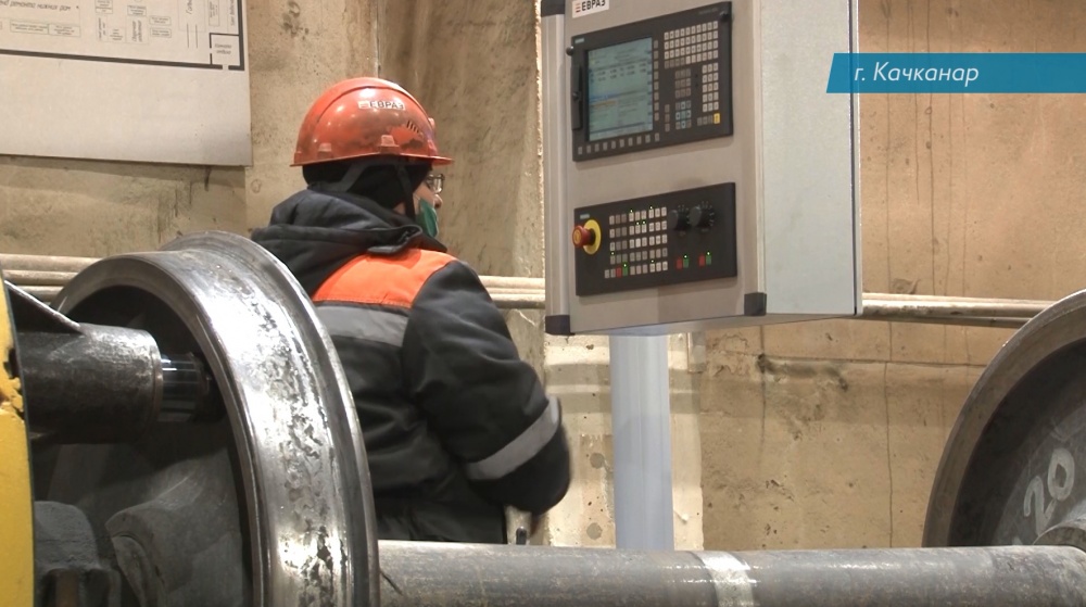 Железнодорожные пути ЕВРАЗ КГОКа имеют множество поворотов, а из карьера локомотив выезжает по спирали. Не сойти с рельсов колесу помогает специальный гребень, который при постоянном трении, естественно, изнашивается. В ремонтном депо на такой гребень наплавляют металл. И теперь новый станок, оснащенный электронной системой управления, стачивает его без погрешностей до нужной толщины и высоты.