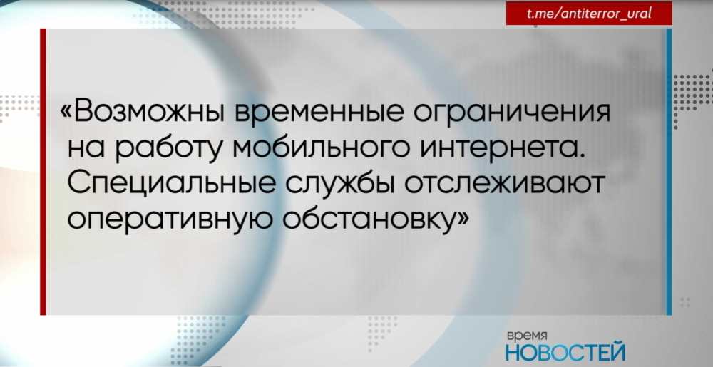 «Возможны временные ограничения на работу мобильного интернета. Специальные службы отслеживают оперативную обстановку» говорится в сообщении.