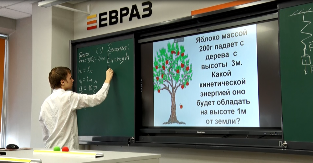 Условия задачи по физике обновляют доску. Это первый урок в новом инженерном классе 30-й школы. Его создали и оснастили при поддержке ЕВРАЗа. А эти десятиклассники сознательно выбрали физику как часть своего будущего.