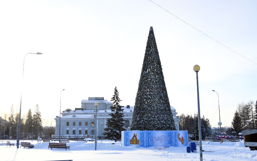 Первая в городе уличная новогодняя елка зажгла свои огни. Стоит 18-метровая красавица на Вагонке, в детском парке Дворца культуры Окунева.