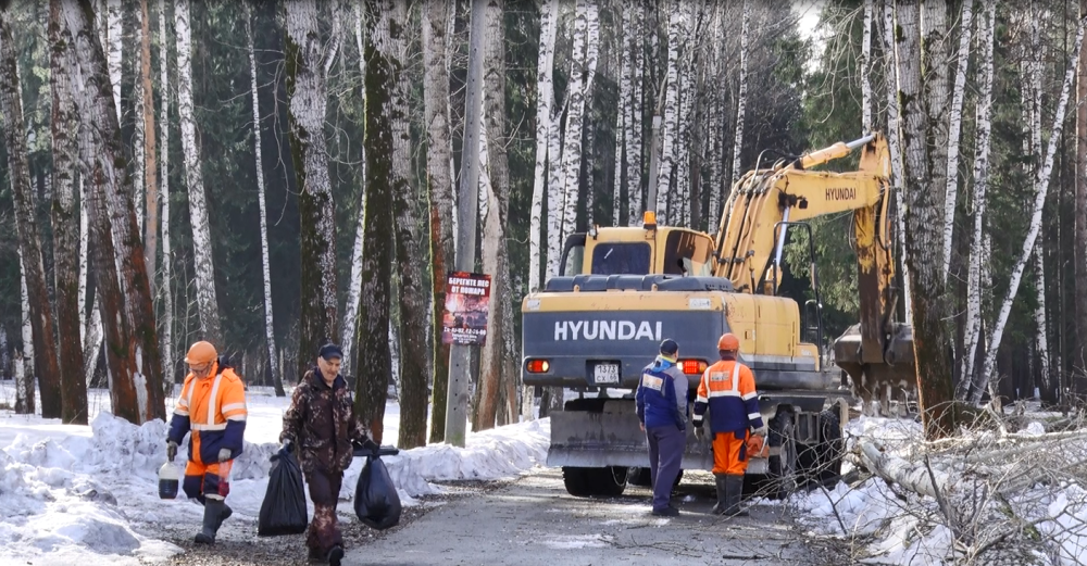 В феврале проект прошел государственную экспертизу, в начале недели начались предварительные работы по обесточиванию и снятию проводов. А сегодня в парке жужжат пилы, первым делом подрядчику необходимо расчистить территорию. Предстоит спилить 136 деревьев, те которые попадают в зону застройки, аварийные и больные деревья. Когда земля оттает, пни выкорчуют, обустроят газоны и высадят кустарники.